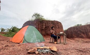 Hot Tent Camping in Heavy Mountains All Day. Stone Stove ASMR