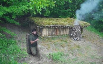 I built survival stone shelter from start to finish, grass roof & fireplace Read More