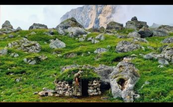 I built survival stone shelter from start to finish, grass roof & fireplace I Built stone shelter from scratch in the wild Mountain. I built and filming alone myself