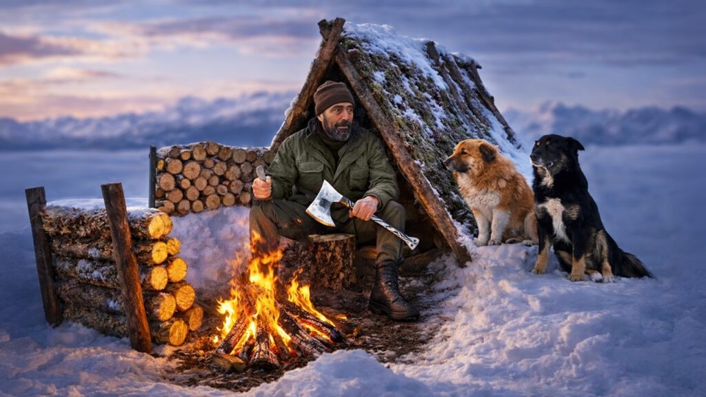 Deep in the snowy mountains, a simple winter shelter takes shape ❄️🌲 Using moss, fallen timber and fire, this video shows how a quiet base camp is built step by step — slowly, carefully, and in harmony with nature.