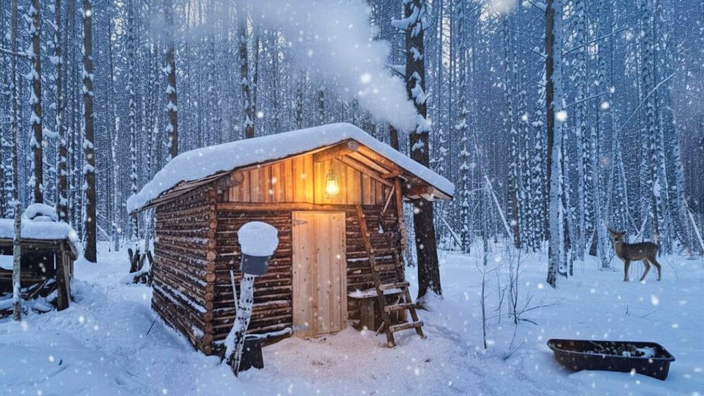Hello everyone In this video, I came back to my wooden house. I found traces of a wild animal near the house. I think it’s a roe deer, it walks very close. I wanted to cut a large birch trunk to use as firewood, but I couldn’t because of the small size of the saw. Also in this video, I finished closing the second gable. To make it warmer inside, I insulated all the joints of the roof with jute, and then fixed a special foil insulation on the ceiling, it will reflect heat into the interior of the house. In the future, I will cover the visible part of the foil so that it cannot be seen. I also insulated the door and made a threshold so that cold air would not get inside. At the end of the day, I cooked a delicious dinner of minced meat, tomatoes and herbs. It turned out very tasty! Thanks for watching!