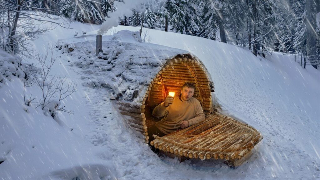 In this video, I’m building a hidden dugout shelter in the side of a hill, using logs, a custom furnace and a fire to protect me from the winter blizzards and heavy snow conditions. Winter bushcrafting, surviving underground, and secretly hidden.