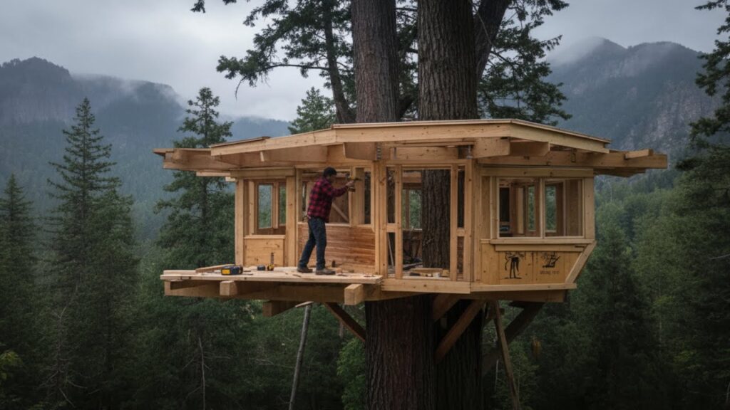 High in the silent peaks, far from roads or neighbors, one man traded concrete for cedar. With only hand tools, determination, and the whispering pines for company, he spent years weaving a sanctuary among the branches. His large treehouse—a testament to solitude and skill—rose timber by timber, anchored to ancient trunks. It wasn’t escape, but communion: windows framing endless sky, a woodstove warming quiet nights, the mountain’s rhythm his only clock. Here, amidst the raw beauty and biting winds, he found profound peace, crafting not just shelter, but a life pared down to essentials, echoing the wild heart of the wilderness itself.